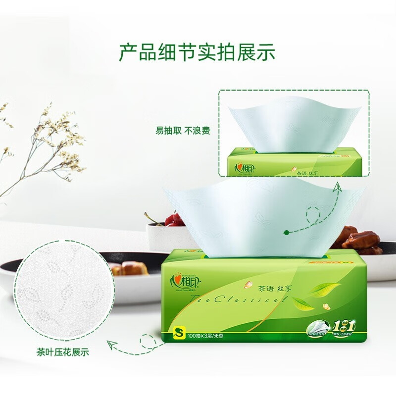心相印抽纸卫生纸家用实惠装大包纸巾抽纸面巾纸餐巾纸超市同款整箱批发 3层 100抽*10包 【促销款】