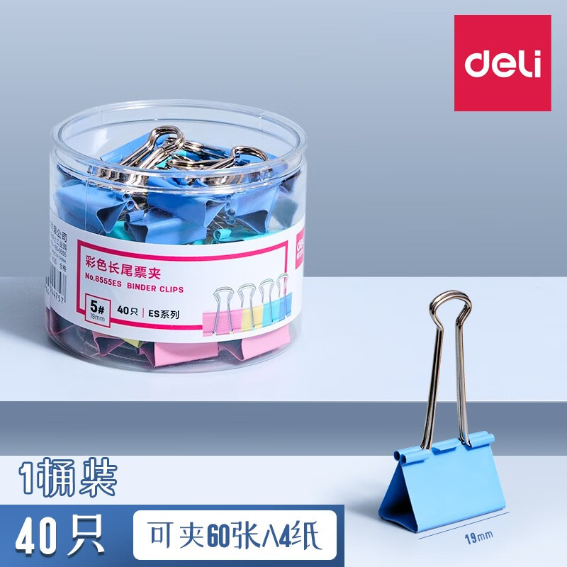 得力(deli)长尾夹文件夹子长尾夹票夹燕尾夹凤尾夹鱼尾夹蝴蝶夹多功能特固定书铁夹大小号办公文具 【彩色款】小号 19mm 40只/筒