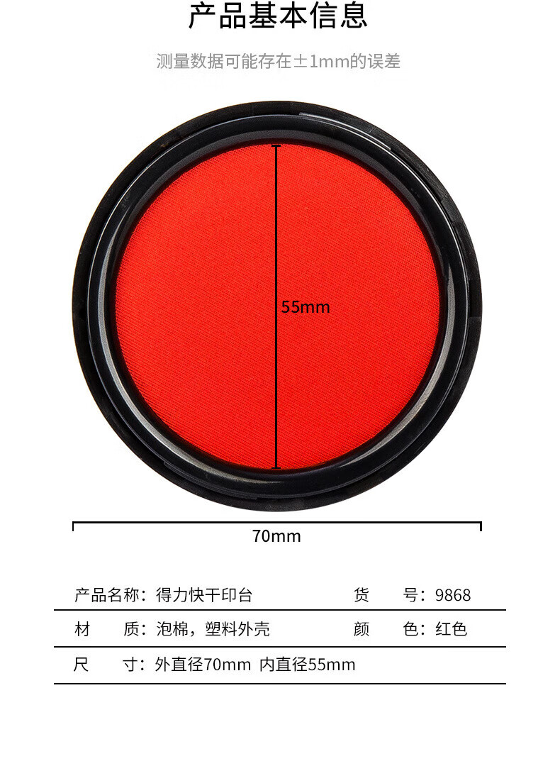 得力(deli)【超级爆款】φ70mm圆形塑壳快干印台印泥 财务办公用品 红色9868(新老混发)