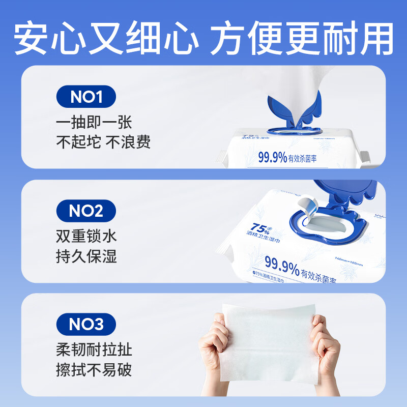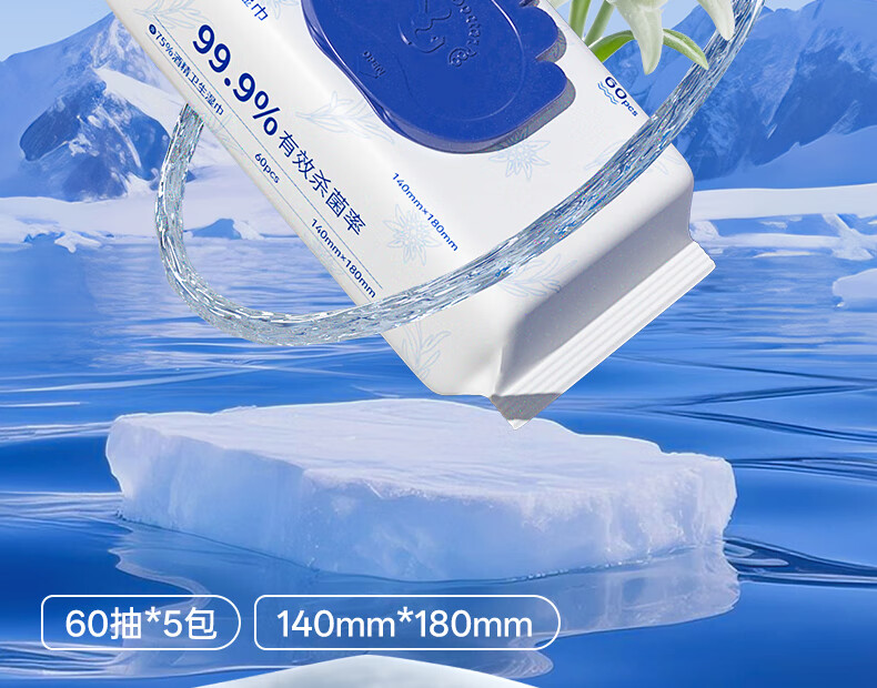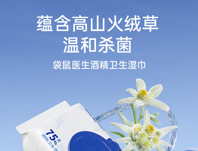 袋鼠医生75%酒精湿巾消毒湿巾60抽*5包杀菌酒精棉片消毒卫生湿纸巾大包
