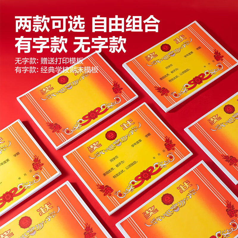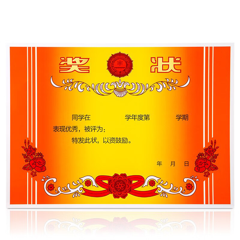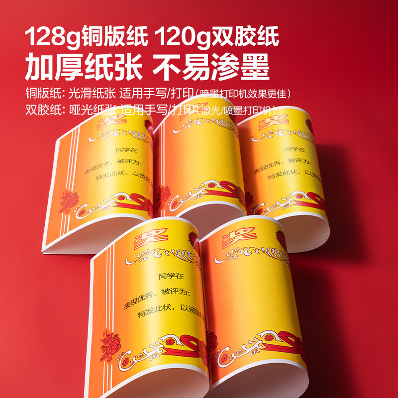 得力(deli)A4奖状纸获奖证书 有字款中小学生表扬表彰奖状教师通用 加厚铜版纸 50张/(包)24827