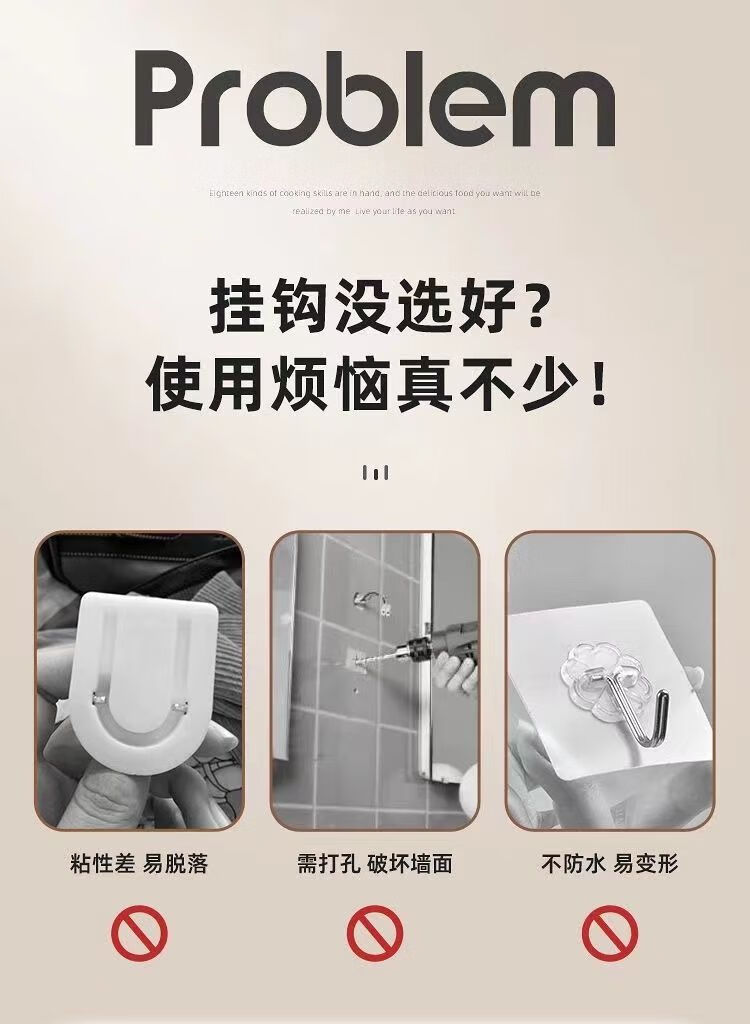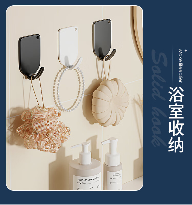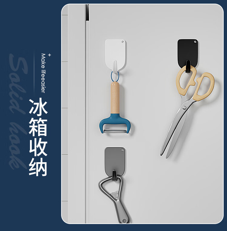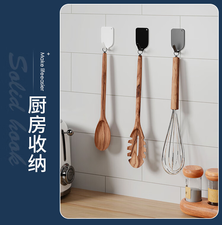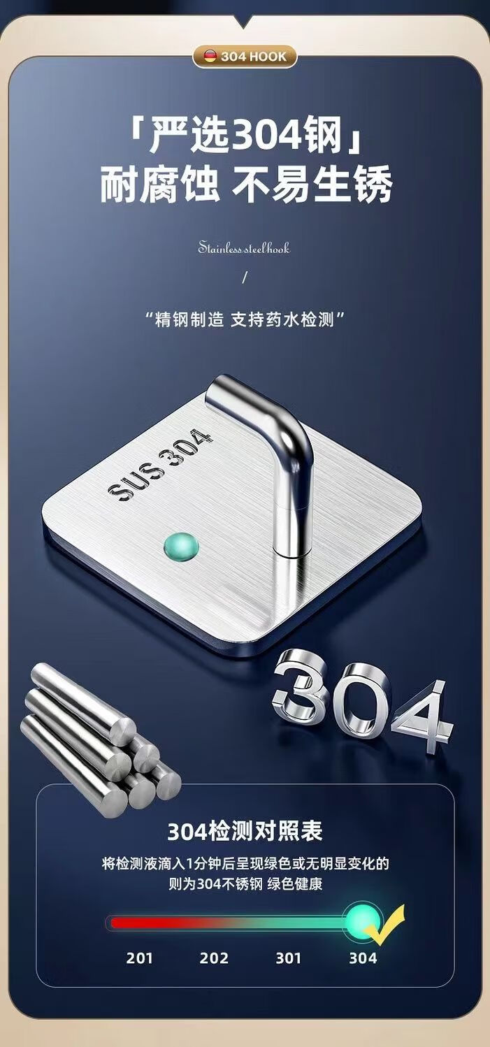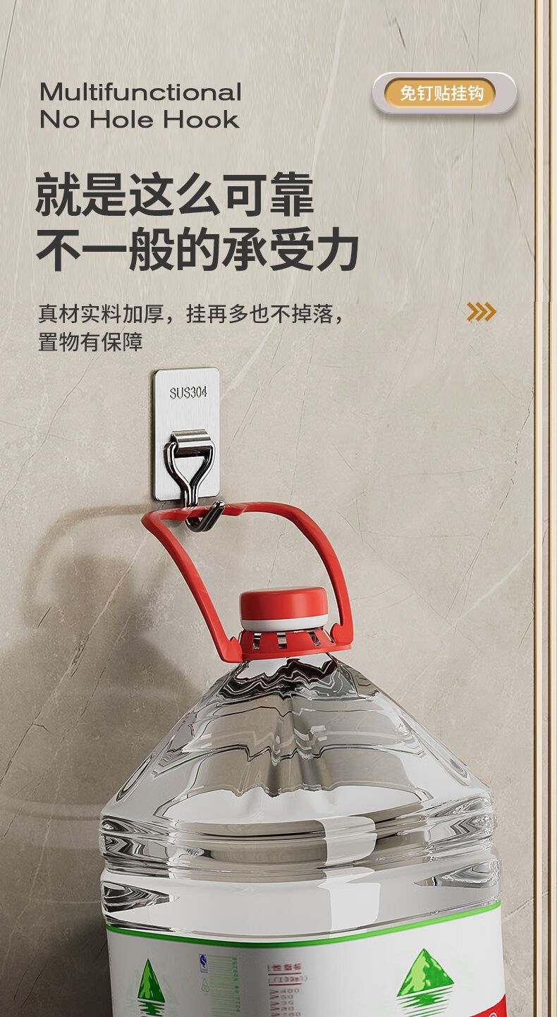 文教文化用品不锈钢挂钩强力承重免打孔粘钩家用浴室厨房墙上毛巾钩门后挂衣钩 正方形象鼻钩 4个挂钩配强力胶水+辅助贴