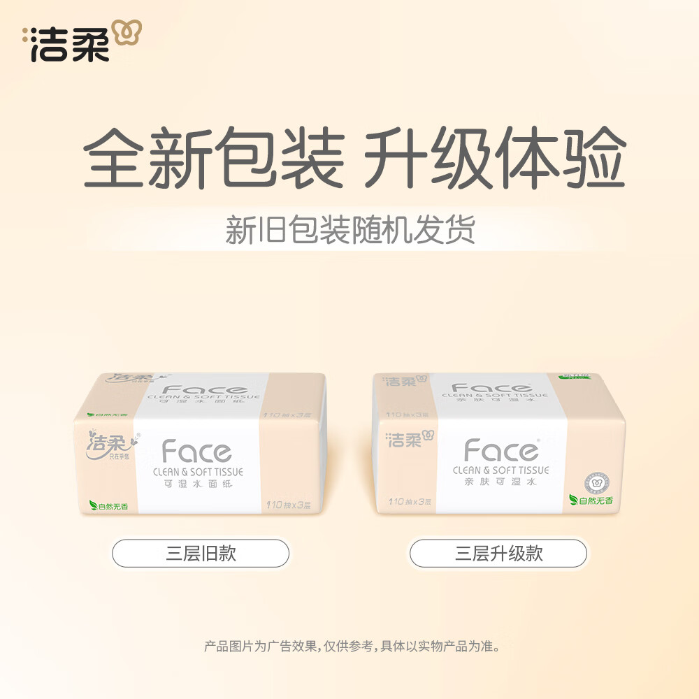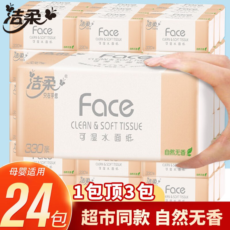 洁柔抽纸粉Face无香柔韧3层110抽大包面巾纸抽纸纸巾可湿水家用纸巾 3层 110抽*24包 【整箱实惠】