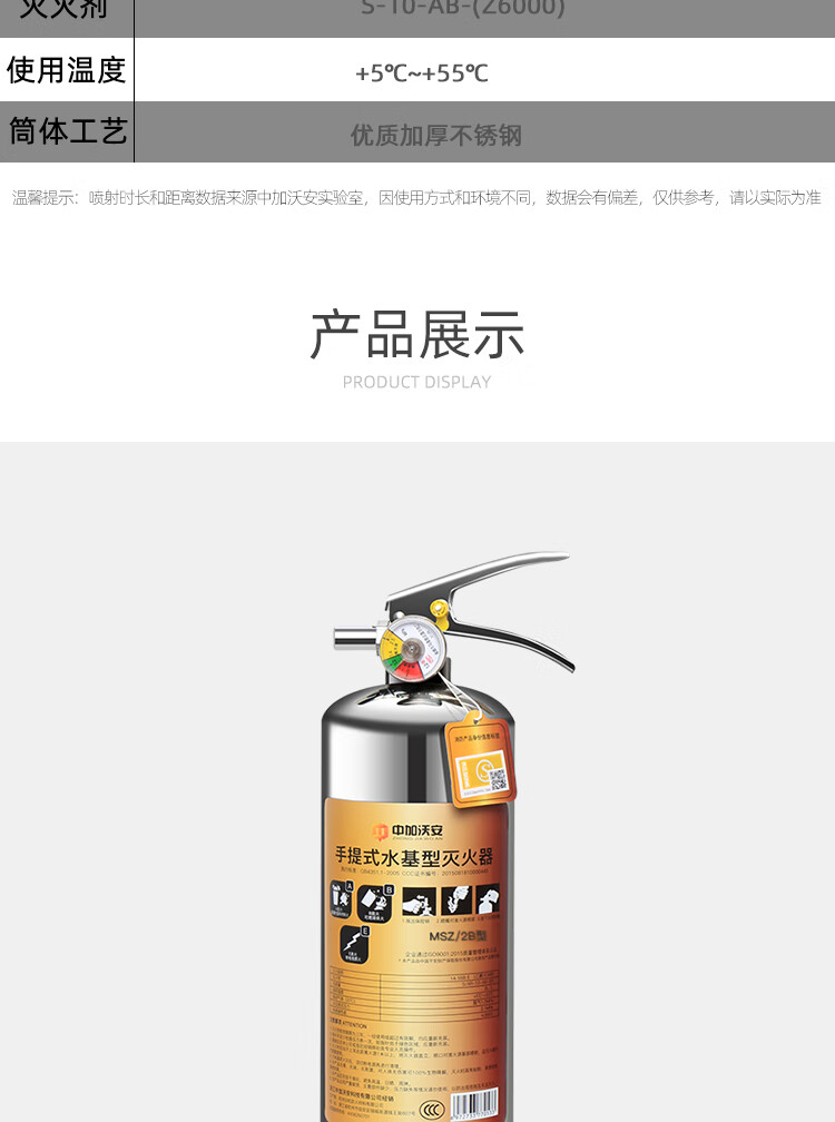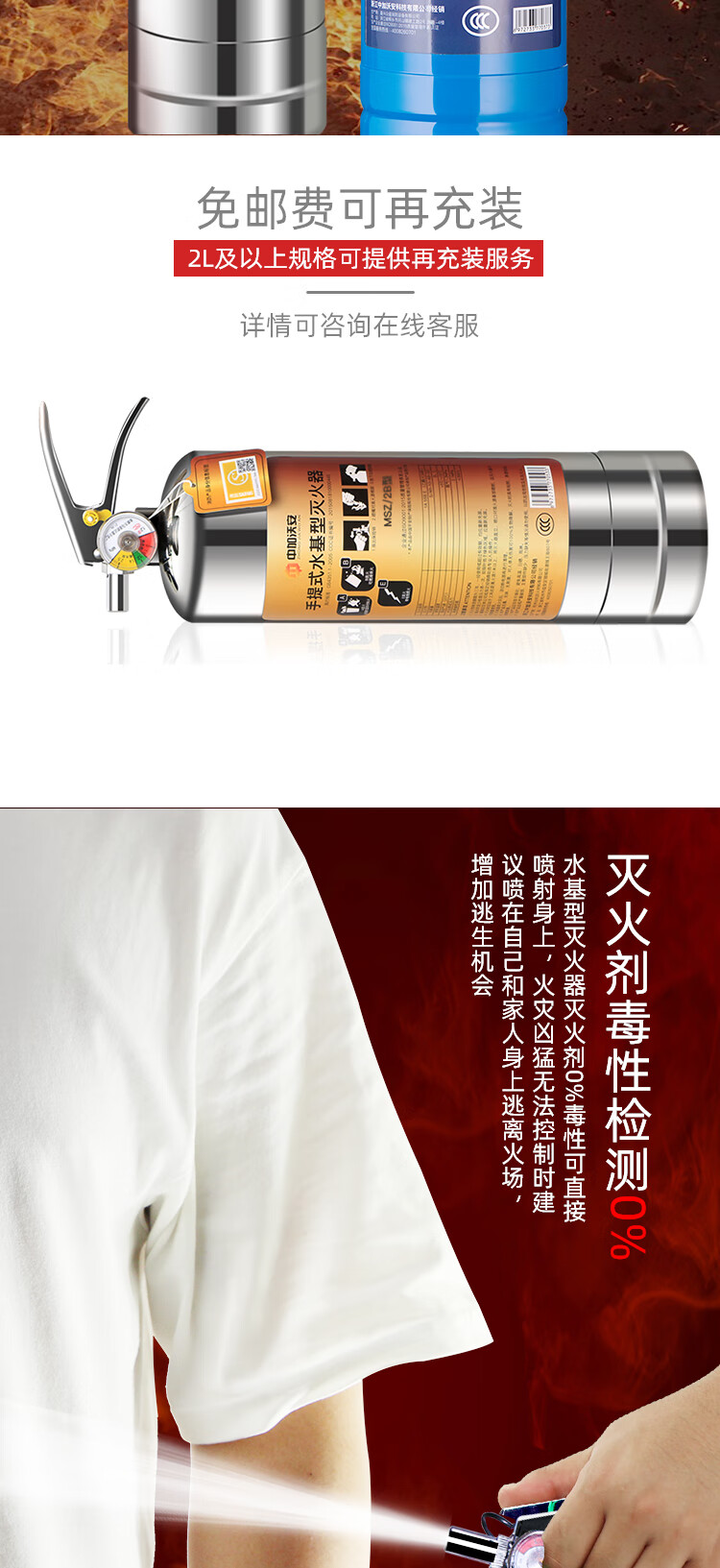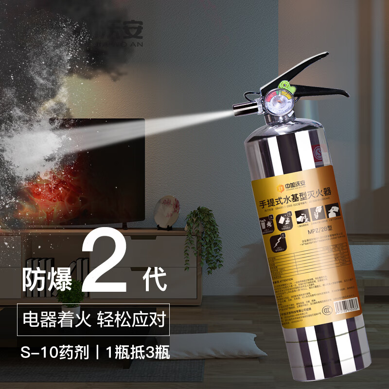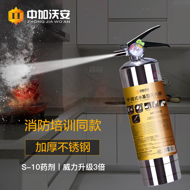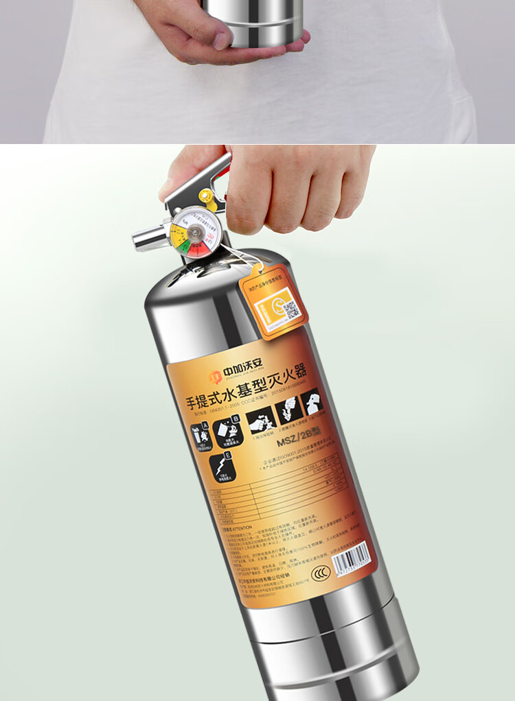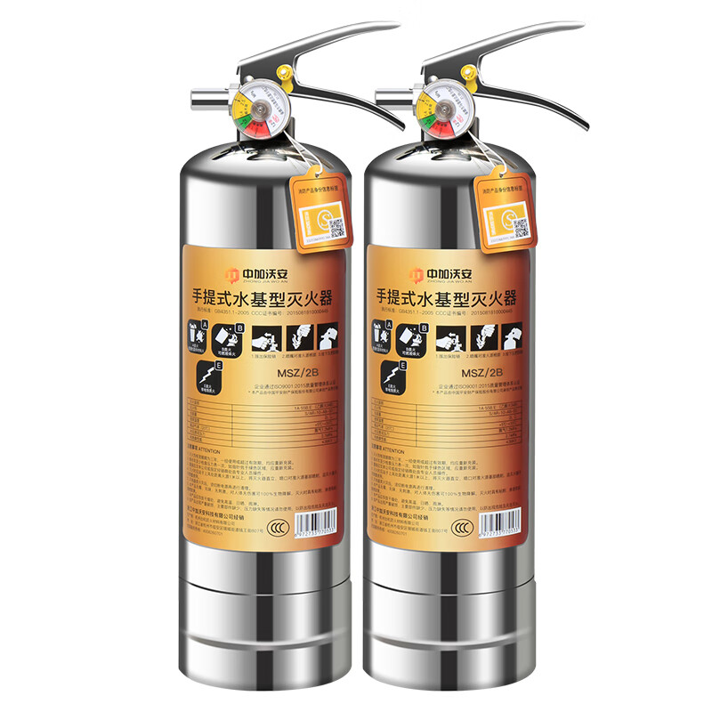 中加沃安不锈钢水基灭火器2L防晒防爆家用【3倍药剂6年有效】MSZ/2B
