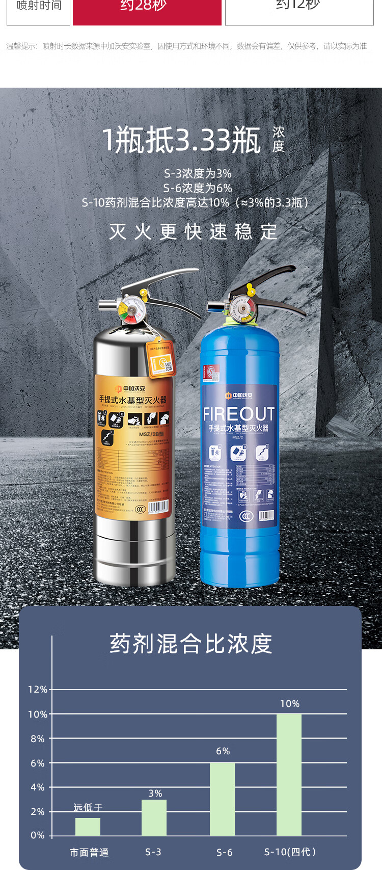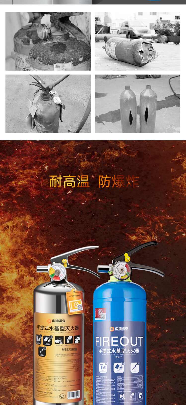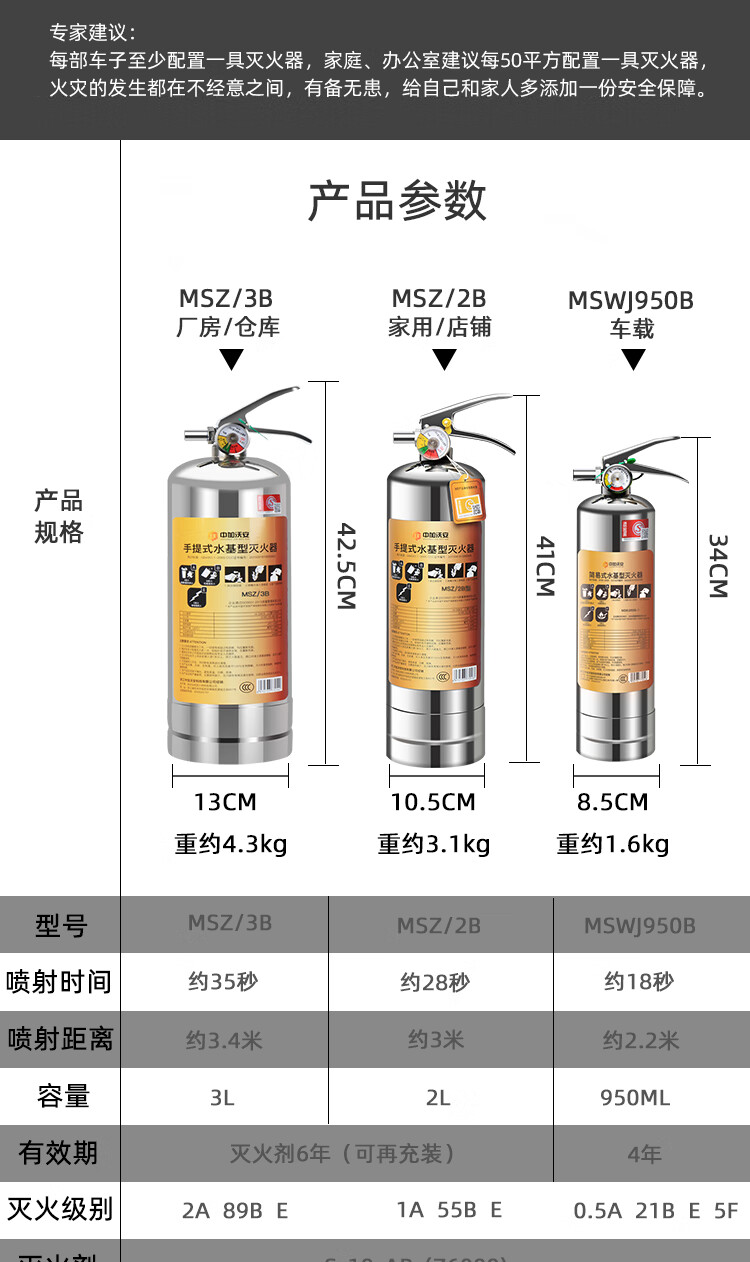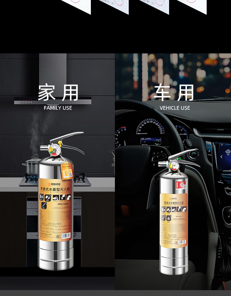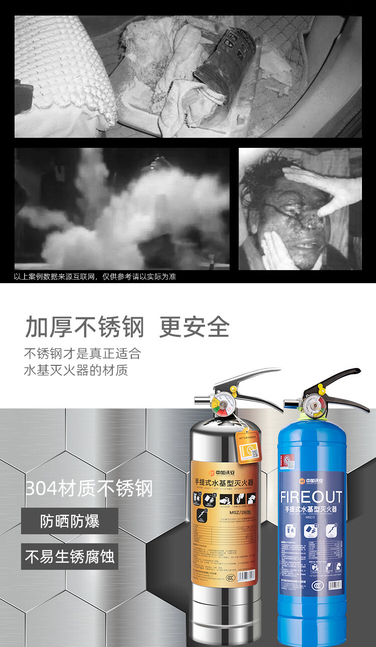 中加沃安不锈钢水基灭火器2L防晒防爆家用【3倍药剂6年有效】MSZ/2B