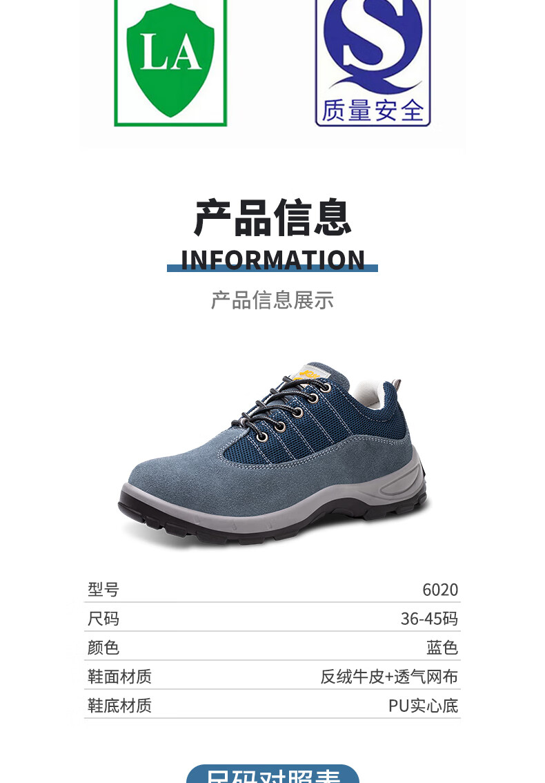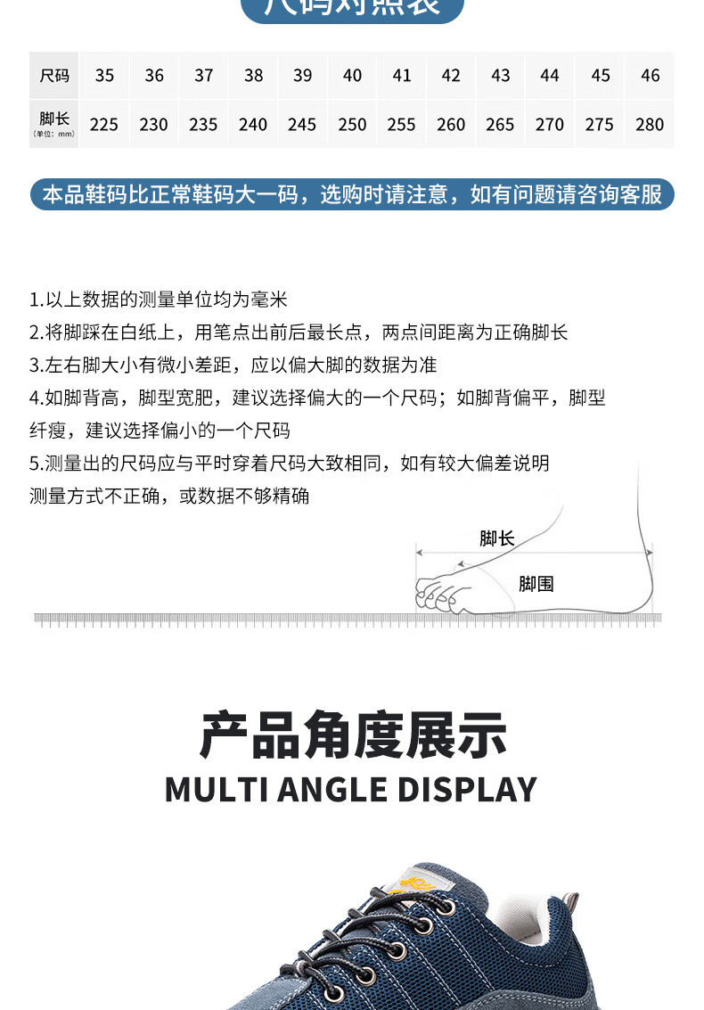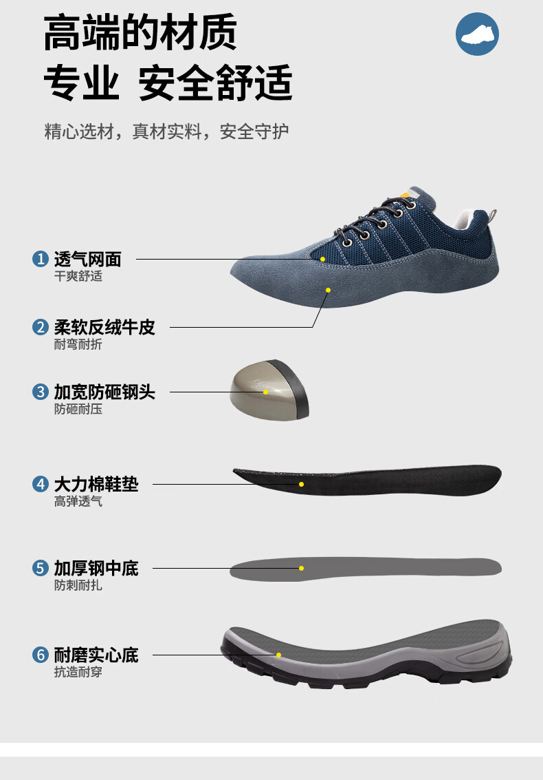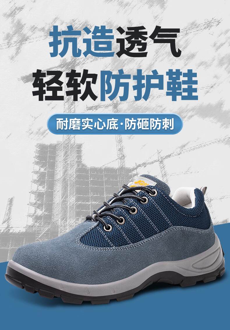 孚诚劳保鞋男透气钢包头防砸防刺穿耐磨实心底采购工作防护安全鞋蓝42