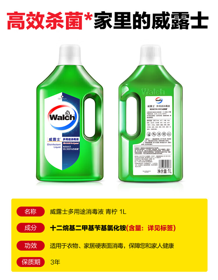 威露士(Walch)多用途消毒液1L 衣物除菌液家居硬表面地板消毒水杀菌祛异味