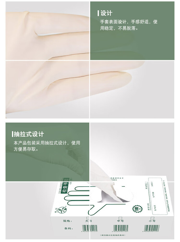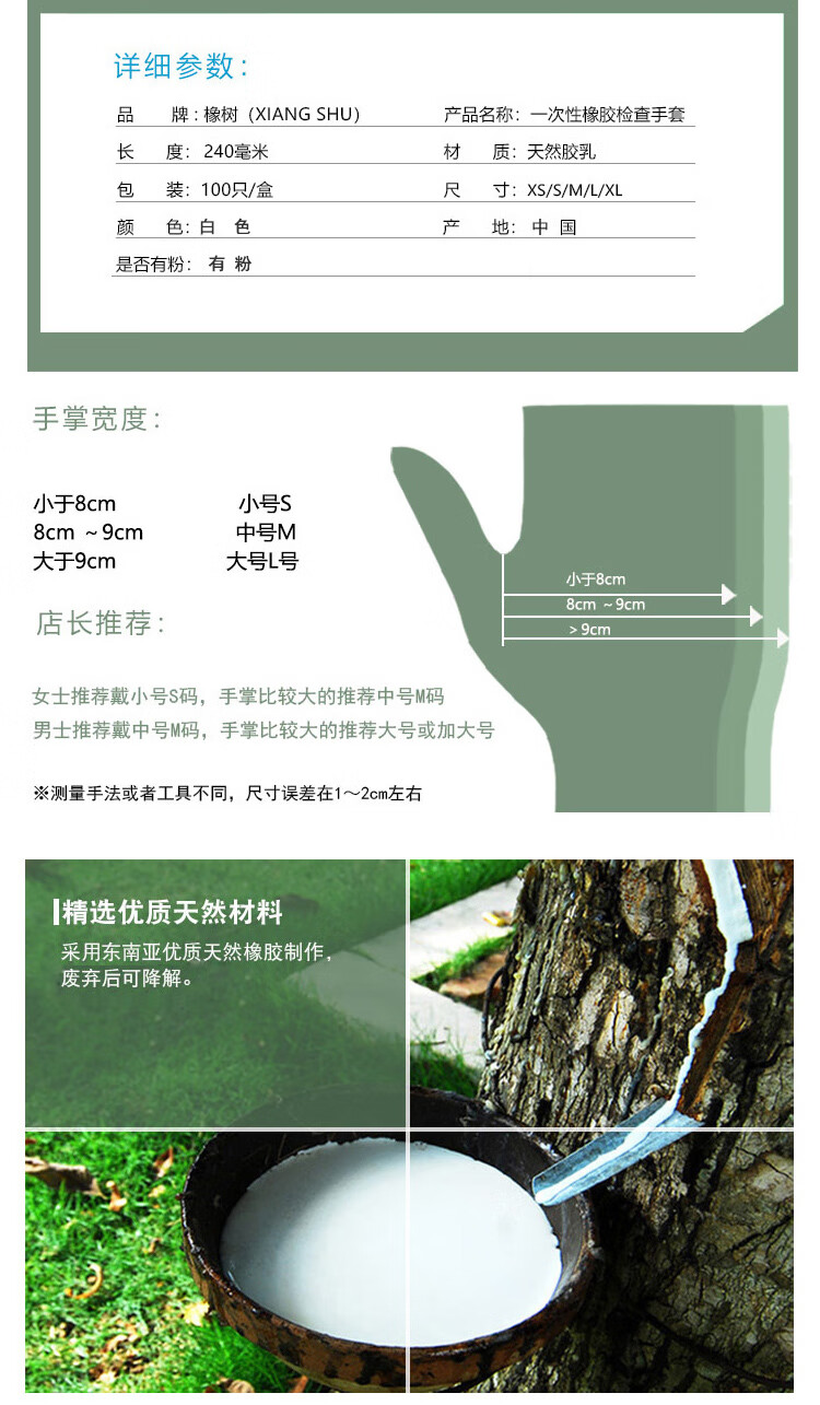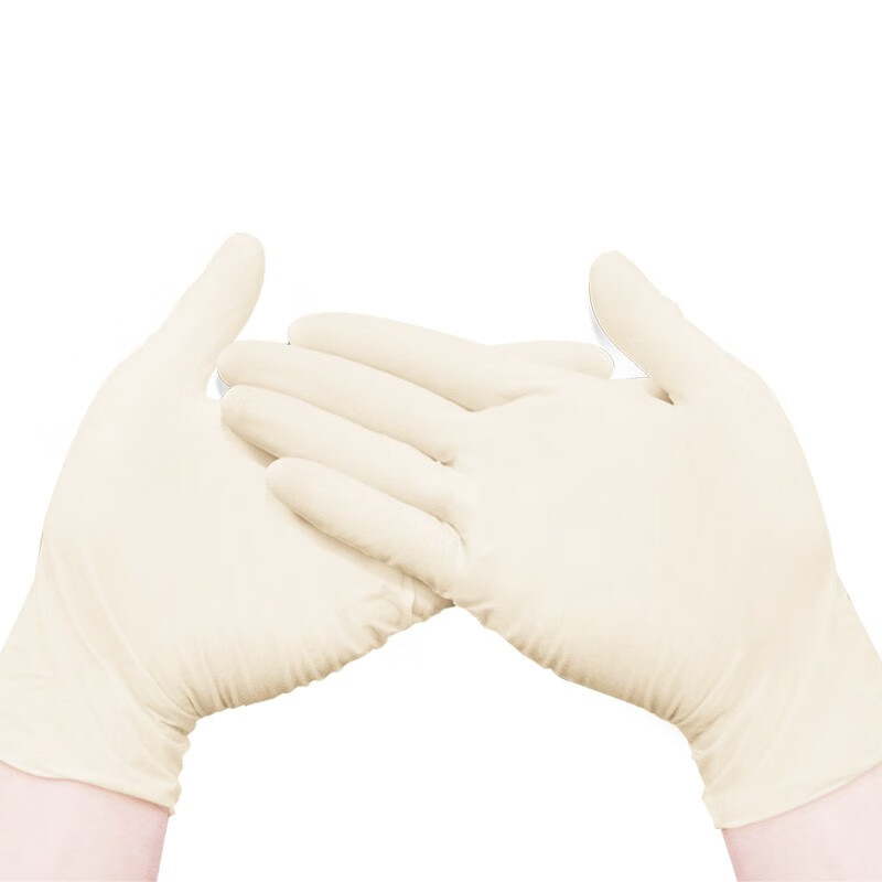 橡树一次性乳胶手套 加工科研实验防护橡胶检查手套 有粉100只/盒 白色L