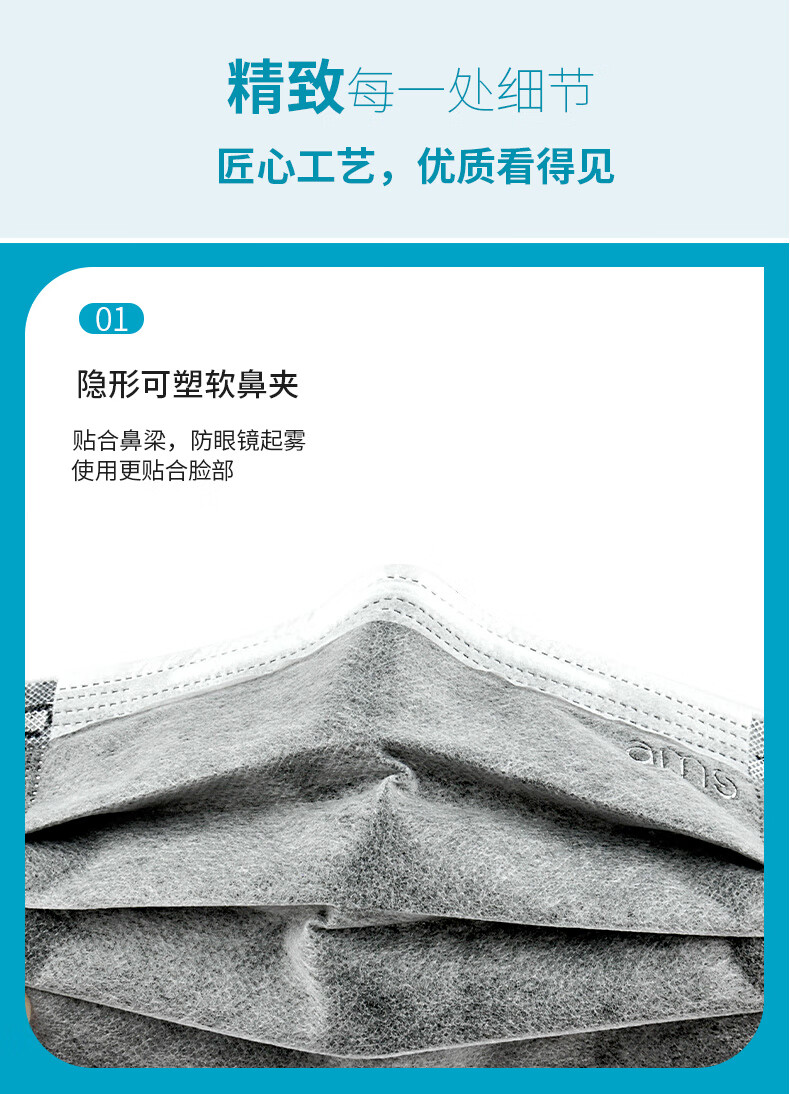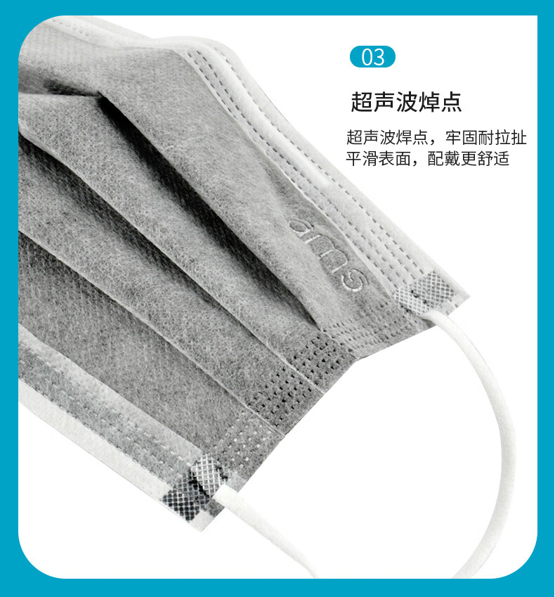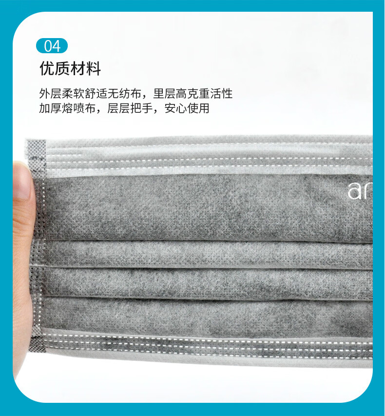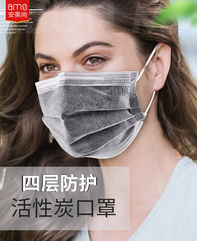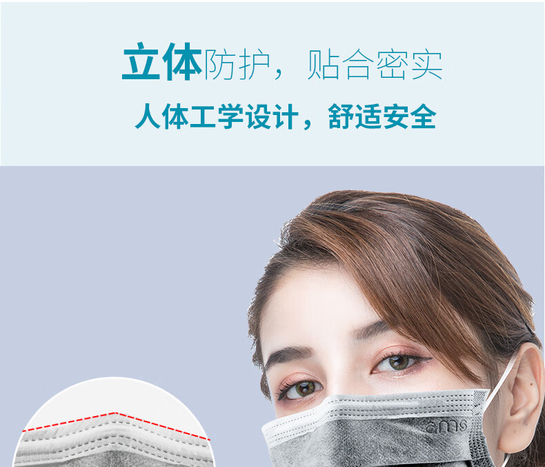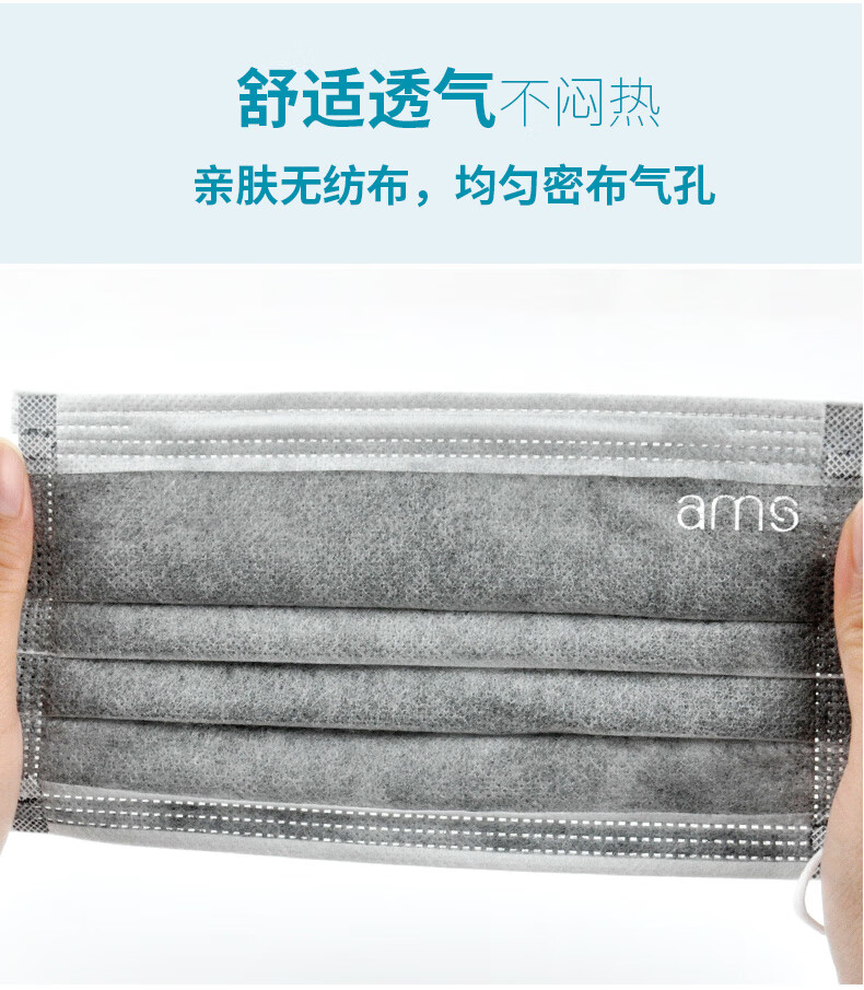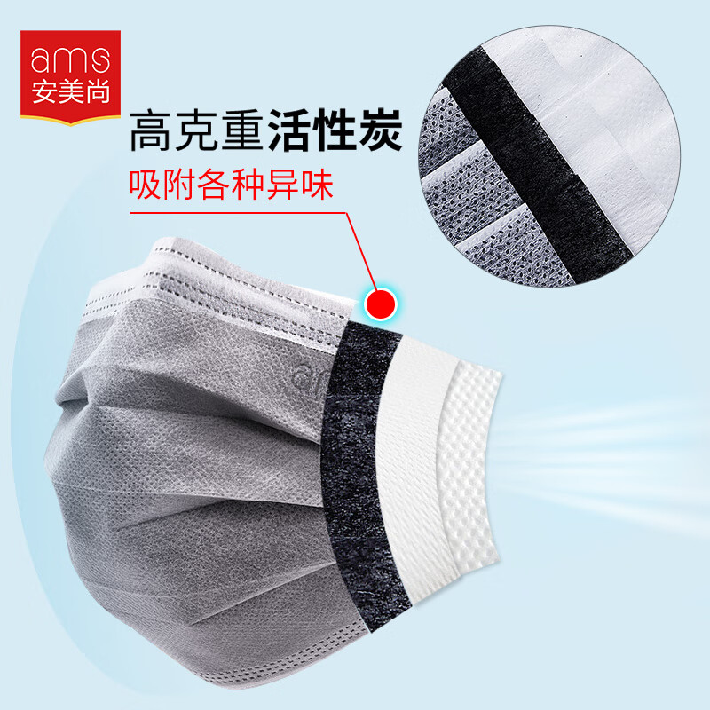 安美尚(ams)一次性活性炭口罩50只/盒 防护室内甲醛异味防尘灰透气防飞沫雾霾污染工业粉尘花粉专用男士